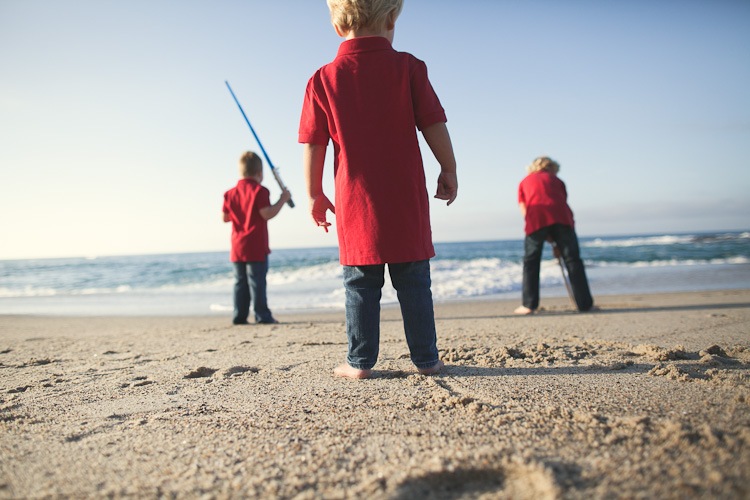 perfect mom for these boys. Observe: a delightful, full-of-love, sunny morning at the beach. With light sabers.